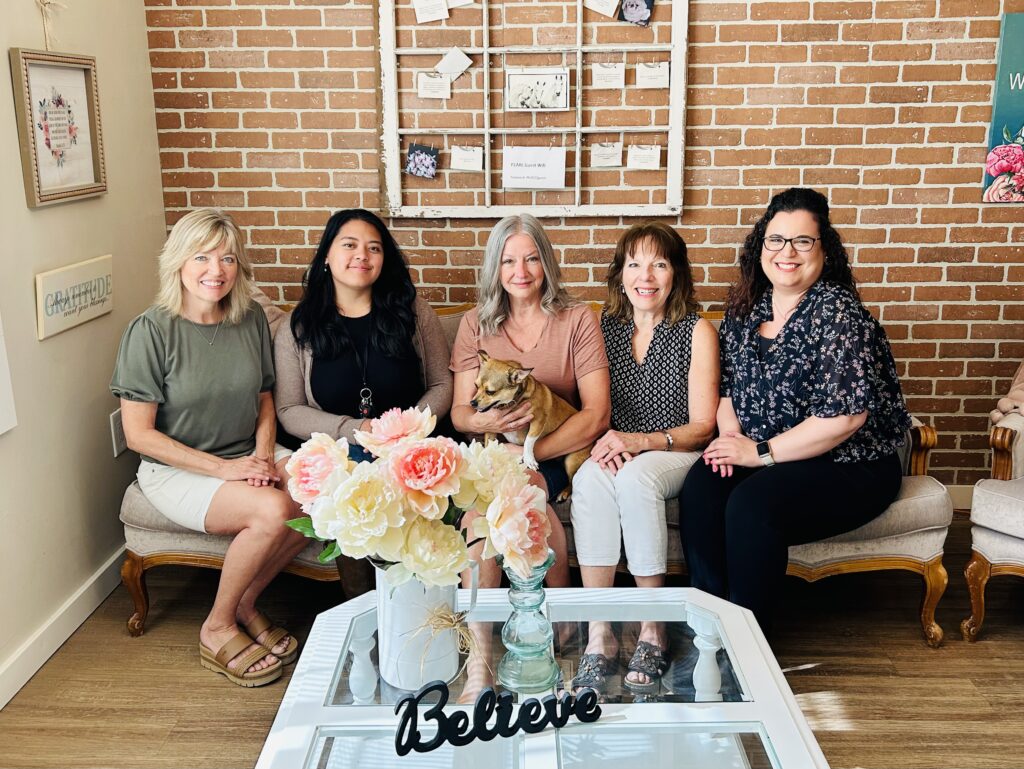 From left to right: Cheryl (Support Worker), Carmelyn (Admin/Social Media), Cindy S (Executive Director), Debbie (Prayer & Support Worker), and Cindy D (Centre Program).